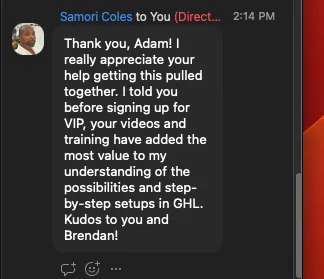 Thats where the GHL Mastery VIP Membership comes into your journey... This is actual, DIRECT access to four people who have built multiple 7 figure businesses for themselves and HUNDREDS for other people.